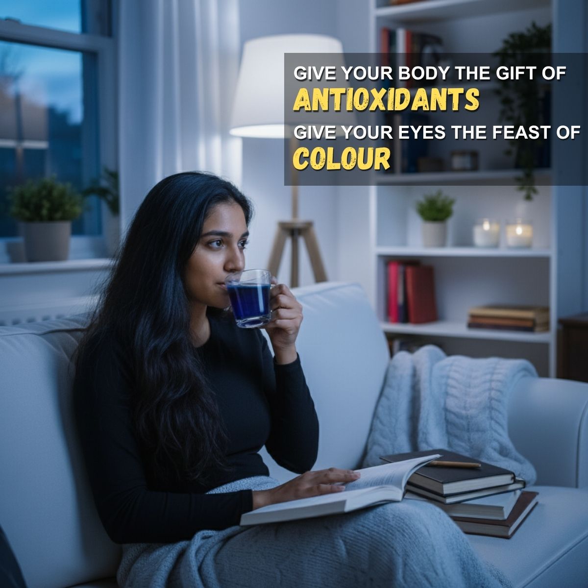 TrueNirvana Butterfly Pea Flower Tea is a naturally caffeine-free herbal infusion with a striking blue color and rich antioxidant profile. It helps improve focus, reduces stress, supports healthy skin and hair, and aids digestion. Add a dash of lemon to see it magically change color from blue to purple, making your tea time both refreshing and fun. Perfect for relaxation after a busy day while supporting overall wellness.